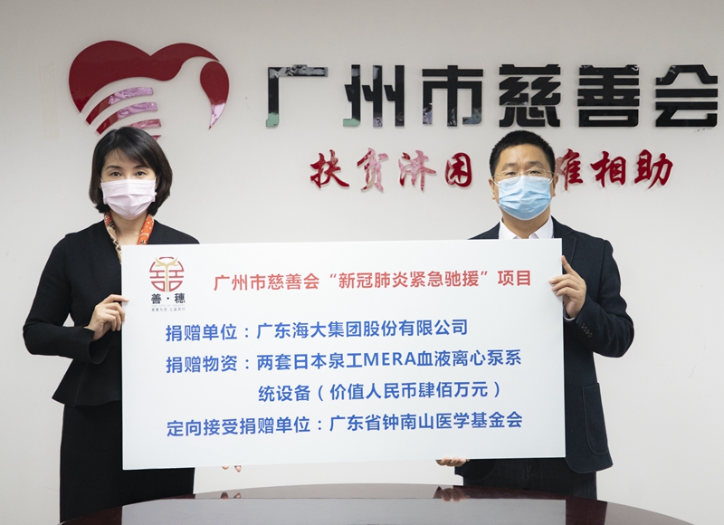 3月4日,海大集團(tuán)通過廣州市慈善會向鐘南山醫(yī)學(xué)基金會捐贈兩套進(jìn)口ECMO設(shè)備(俗稱人工肺)總價值400萬元。