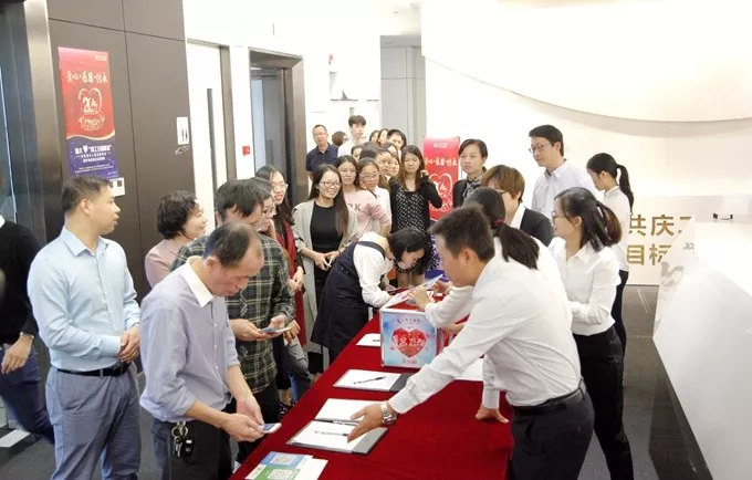 捐款同事在簽名墻揮筆留下紀(jì)念