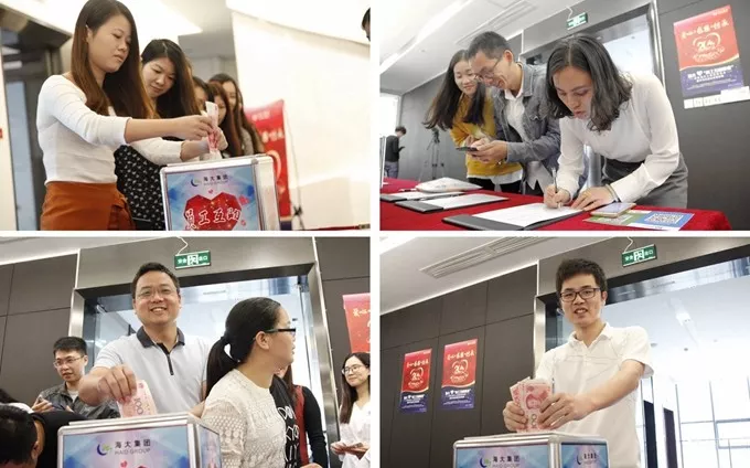 活動伊始,海大員工已在捐款地點排好了隊,紛紛慷慨解囊、踴躍捐款,組織部門進(jìn)行現(xiàn)場實名登記,將海大員工的愛心記錄下來?,F(xiàn)場在《 I Believe I Can Fly》的歌聲環(huán)繞下,氣氛顯得異常感人,捐款活動現(xiàn)場形成了一片“愛的海洋”。活動結(jié)束后,海大領(lǐng)導(dǎo)與員工進(jìn)行集體拍照,鐫刻愛心匯聚一刻。
