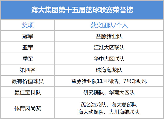 經(jīng)過六天的激烈比拼,籃球聯(lián)賽中奪得冠軍為益豚豬業(yè)隊(duì),亞軍為江淮大區(qū)聯(lián)隊(duì),季軍為華中大區(qū)聯(lián)隊(duì);而足球聯(lián)賽中珠海容川隊(duì)摘得冠軍,亞軍為華中一隊(duì),季軍為湛江海大隊(duì)。