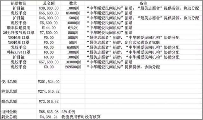 談到在募捐的過(guò)程中遇到的困難,張爭(zhēng)顯得云淡風(fēng)輕,“剛開(kāi)始購(gòu)買物資的時(shí)候,因?yàn)椴欢?gòu)買的物資基本不合格,捐贈(zèng)總被拒收,后來(lái)一個(gè)在生物檢測(cè)公司上班的師兄加入到我們的工作小組,這個(gè)問(wèn)題就解決了”,張爭(zhēng)說(shuō),“必須得學(xué)會(huì)發(fā)動(dòng)大眾的力量,人多力量大。”“募捐過(guò)程中有沒(méi)有異樣的聲音?”筆者問(wèn)。“有朋友反對(duì)這樣的募捐行為,認(rèn)為價(jià)值不大,又容易滋生騙子,但是我不這么認(rèn)為,目前我們把每一筆捐贈(zèng)明細(xì)都做到公開(kāi)透明,個(gè)人力量確實(shí)有限,但是聚沙成塔,積少成多,若人人都能邁出一小步,我們的社會(huì)就會(huì)邁出一大步。”張爭(zhēng)向公眾公開(kāi)了所有捐贈(zèng)明細(xì)和捐贈(zèng)單位。