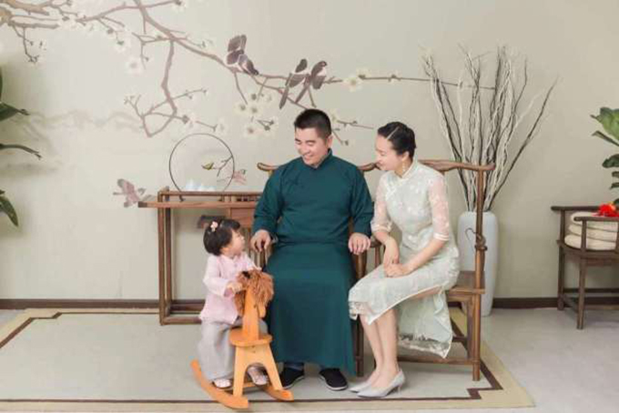 張爭(zhēng)一家三口的溫馨合影
